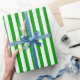 Christmas Green White Stripes Pattern Gold Text Wrapping Paper