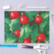 Christmas tissue paper design featuring red holly berries and Christmas greenery.