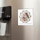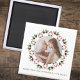 This design features a Christmas holiday red and green photo print with elegant greenery foliage holly berries, a simple minimalist minimal wreath, with pinecones pine cones botanical leaves, stylish trendy festive holiday leaf, a circle round photo picture template, a creative unique simplistic elegance, modern classic classy style design, Christmas holiday magnetic magnet fridge home decor, Christmas holiday photo gift idea