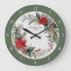 Christmas Greenery with Red Poinsettias Custom Large Clock