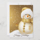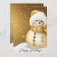 Christmas Greeting Golden Snowman Winter Holiday Card
