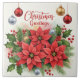 Christmas Greetings, colourful poinsettias with festive ornaments.