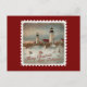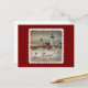Charming retro style winter beach scene with "Merry Christmas from Delaware" Christmas postcard on festive red background.