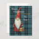 Christmas Greetings To You . A Christmas Gnome with a plaid background. Card is blank. Customise with your own text.
