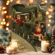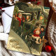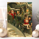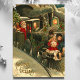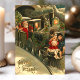 Beautiful vintage Christmas Train postcard. "Christmas Greetings" written in the lower left corner. This design features a Santa Claus train conductor with two little children hitching a ride on the front of the train.