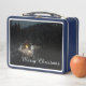 This is a standard metal lunchbox that appears to work just fine. We designed this box ourselves with an uploaded photo and custom text on the front and back. It looks absolutely beautiful except the front of the lunchbox is not centered like it shows in the photo. The print borders don't align with the inset flat part of the box where the preview photo online showed it perfectly centered in there. The back looks nice and centered though.