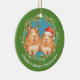 Cute Christmas Guinea Pigs Santa and Reindeer Wreath - ideal as a "our first Christmas as newly weds" - tree ornaments from Ricaso - easy to personalise with your own details - designed with two adorable brown guinea pigs - one wearing a Santa hat the other in antlers and surrounded by a holly berry wreath on a green and blue background - a beautiful holiday keepsake