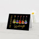 Music themed cool colourful Christmas guitar seasons greetings black and gold foil festive greeting card. Let’s rock and roll this festive season with these fun, colourful jazzy, guitars wearing Santa hats. Acoustic guitars, electric guitars and semi acoustic guitars psychedelic colourful designs to bring holiday cheer to your guitarist musician friends and budding rock stars. This funny musical instrument Happy Holidays card can be easily personalised using the templates. Original artwork by artist Catherine Sweetman