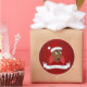 Personalised design with an illustration of happy smiling African American man with Santa Claus' hat; with editable text template, Christmas holidays design with a red background, by Radka Kavalcova