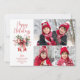 Christmas HAPPY HOLIDAYS 3 Photos Red Bow Script Holiday Card