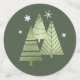 Coordinating designs for Christmas all with an outdoorsy theme in shades of moss green and white; the first features deer head silhouettes with curving antlers, stylised arrows and tiny snowflakes on a textured-effect background; the second is stripes in two shades of green and white while the third is a pattern of stylised Christmas trees and snowflakes on a darker green background. 'Happy Holidays' text is optional. Search ID861 thru ID864 to see additional colour options and other products in this modern, Christmas design set.
