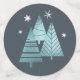 Coordinating designs for Christmas all with an outdoorsy theme in shades of watchet blue, deep teal and white; the first features deer head silhouettes with curving antlers, stylised arrows and tiny snowflakes on a textured-effect background; the second is stripes in two shades of teal and white while the third is a pattern of stylised Christmas trees and snowflakes on a dark teal background. 'Happy Holidays' text is optional. Search ID861 thru ID864 to see additional colour options and other products in this modern, Christmas design set.
