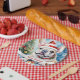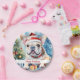 Paper plates featuring a cute watercolor French Bulldog with a Christmas hat. Customisable.