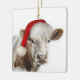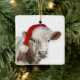 Christmas Hereford Cow With Santa Hat Ceramic Ornament