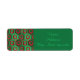 These return address labels have a geometric design of hexagons in four shades of green on a field of stripes in two shades of red.