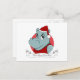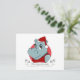 Personalised postcard design with an illustration of a cute happy hippopotamus with a red and white Santa Claus hat; Christmas holidays design for kids, with customisable text template for your name or message