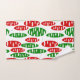 This towel set has a repeating pattern of ovals in red and green with scattered white ovals all on a field of white.