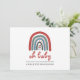 A cute whimsical Christmas boho style watercolor rainbow baby shower invitation. A perfect theme for a baby shower with a due date close to the holidays.