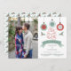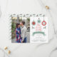 Christmas holiday baubles wedding or other occasion photo "Save the Date" design. Features three snowflake design, round baubles in mint green, light grey and dusky red at top with centre circles for the month, day and year with two holly boughs below as well as the "Save the Date" text (uneditable--contact designer if you need changed), followed by a mint green banner with the editable words "for the wedding of" and your names as well as the venue. Two handdrawn pine branches round out the design at the bottom. On back is a repeat pattern of holly and pine boughs. Simply add your photo and details to complete.
