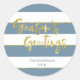 Christmas Holiday Blue Gold Custom Greeting Classic Round Sticker