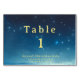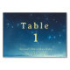 Christmas holiday table card featuring stars with blue and gold colours. Great table number party supplies for your Christmas table. Enhance your table with custom table number cards. Customise the text. Use the template to create your own Christmas holiday blue and gold table number card.