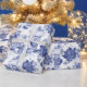 Christmas Holiday Blue Winter Stockings Poinsettia Wrapping Paper