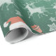 Merry Christmas and Happy New Year Holiday Greeting Wrapping Paper - Modern Black and White Santa Claus with Sleigh and Reindeer on Green Texture Background.
