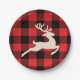 Christmas Holiday Deer Antlers Red Black Gingham Paper Plate