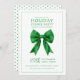 Christmas Holiday Dinner Party Green Satin Bow Invitation