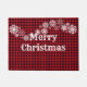 This doormat is shown in a cute festive Christmas holiday snowflakes and black and red buffalo plaid print design.