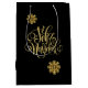 This Christmas holiday gift bag is shown in a festive Feliz Navidad print.