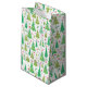 This Christmas holiday gift bag is shown in a festive holiday trees print.