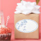 Holiday gift tag sticker is shown with a winter blue snowflakes print, Text of To: & From: on sticker for your gift recipient.