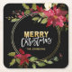 Christmas Holiday Gold Red Poinsettia Square Paper Coaster