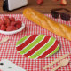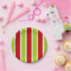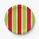Christmas Holiday Green & Red Stripes Pattern Paper Plate