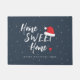 Casual typography home sweet home script with a little red heart and Santa hat making a festive Christmas holidays doormat. +++++++++++ Personalise it with your text! It can be a chic decor for the holidays or a nice keepsake Christmas gift for newlyweds, housewarming, first home, new home, or family anniversary.