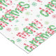 Holiday table runner is shown with a festive candy cane style Merry Christmas print.