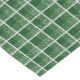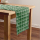 Holiday table runner is shown with a festive green plaid pearl print.