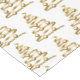 Holiday table runner is shown with a festive ribbon tree print.