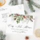 Announce your new home to family and friends with this modern design comprising of white and red holiday script and winter foliage.