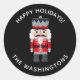 A faux glitter nutcracker holiday sticker. Coordinates with the nutcracker Christmas collection. Personalise it with your family name. Makes a fun label for your Christmas cards and Holiday treats and gifts.