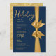 Christmas Holiday Open House Gold Ribbon Navy Invitation