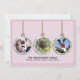 This flat holiday card features non traditional colour Christmas ornaments on the front and back over a pastel pink. The front ornaments are used as photo placeholders for you to replace with your personal photos of people or your pets. A square replacement photo works best. Personalise the template fields with your greeting and other information or delete any of the text for a handwritten message.