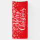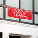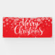 Select from indoor or outdoor, with or without grommets. Shown in red with snowflakes and white text "Merry Christmas".