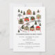 Christmas holiday party invites featuring Christmas village of decorated houses for any neighbourhood or family party.