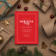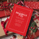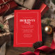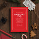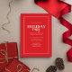This design features a Christmas holiday party red simple, rustic farmhouse farm up north, minimalist minimal buffalo plaid, red and black check chequered, Christmas holiday get together, modern calligraphy script font, with trendy stylish typography text style, a country elegant simplistic celebration, Christmas holiday party invitations, a simple basic clean holiday invites