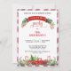 Delight friends and family with this beautiful Christmas or Holiday party invitation with exquisite border on the bottom with hand painted watercolor greenery, holiday cookies and holiday treats and red vintage truck carrying Christmas trees. On the top red ribbon with holly, greenery and mistletoe encasing "Christmas" or "Holiday" word , "party" just below it in beautiful hand written calligraphy. Red and white attractive vintage frame encasing entire card. Back in red. Collection with coordinating products available.
