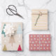 Christmas Holiday Pattern Pink Tree and Stars wrapping paper sheet set from Ricaso