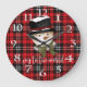Christmas Holiday Red and Black Tartan Snowman Large Clock