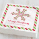This holiday Christmas design features a merry Christmas holiday red green, colourful modern cute snowflake, merry Christmas holiday red green, colourful modern cute snowflake, simple traditional contemporary Xmas, minimalist minimal winter typography, fun whimsical holiday Christmas party, modern festive cocktail paper napkin, classic family name simple Xmas, trendy stylish Christmas, whimsical typography template chic, holiday Christmas party napkin